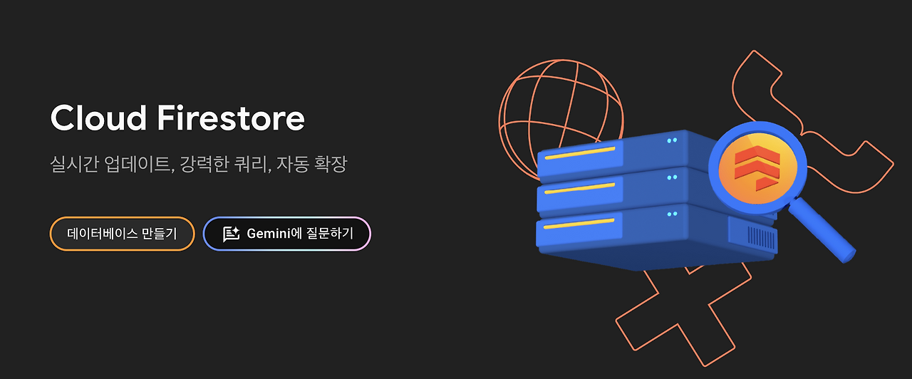1. 예제에서 Firestore를 사용하기 위해 콘솔에서 Firestore로 이동 후 데이터베이스 만들기를 클릭합니다.