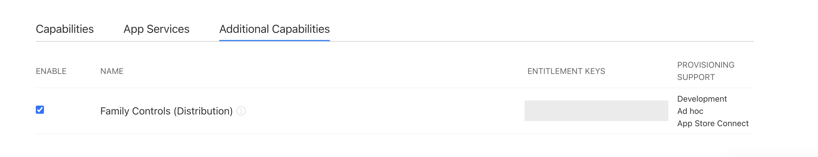 Family Controls를 검색하셔서 Capabilities를 추가해주세요.